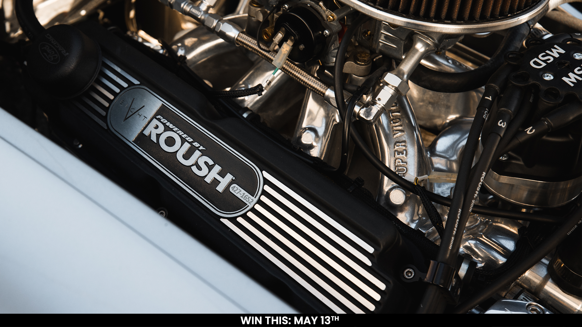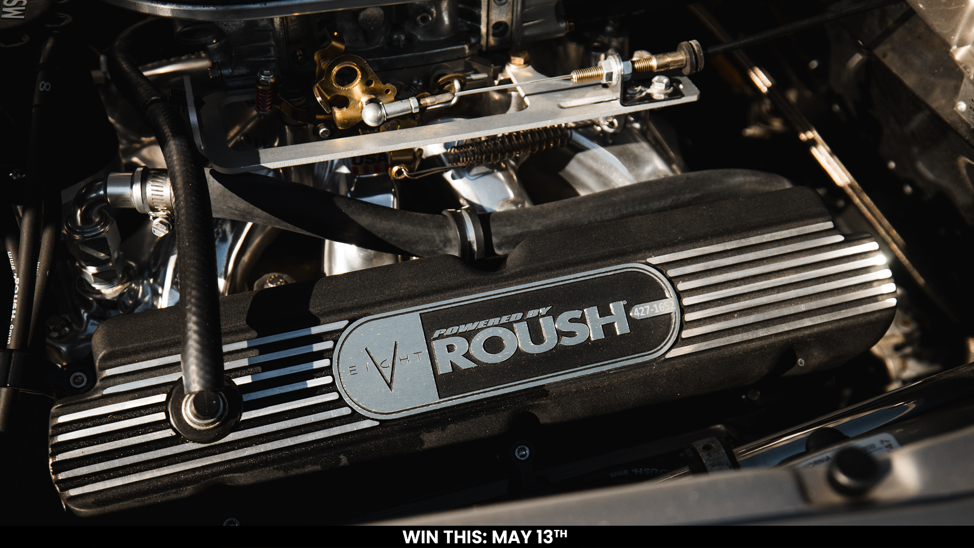 - Roush 427R V8 installed by Backdraft Motors (June 2021) with Edelbrock intake, Holley carburetor, MSD ignition, and billet pulleys
